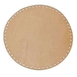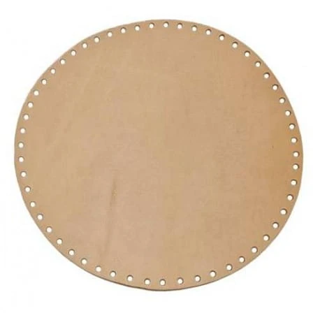 Okrągłe dno do torebek marki "Taki Pompon" z naturalnej skóry juchtowej o wyjątkowej trwałości. Dno ma średnicę 25cm a jego grubość to 3mm. Dno to, jest dość sztywne i nie "zapada" się po włożeniu czegoś do torebki. Na brzegu dna zrobione są dziurki do zaszydełkowania.