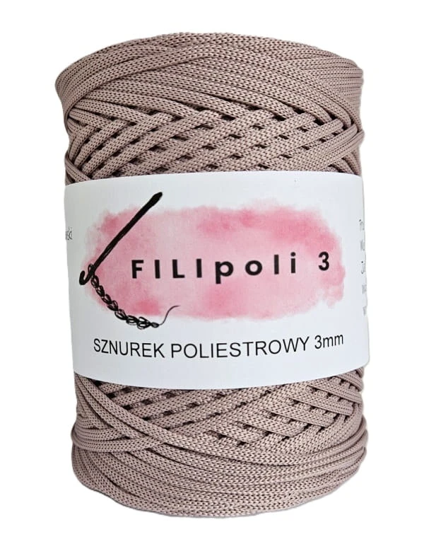 FILIpoli 3mm to piękny sznurek bez rdzenia, który świetnie się nadaje do szydełkowania torebek, koszyczków, biżuterii, bieżników, podkładek pod kubki, osłonek na doniczki i innych dekoracji domowych.