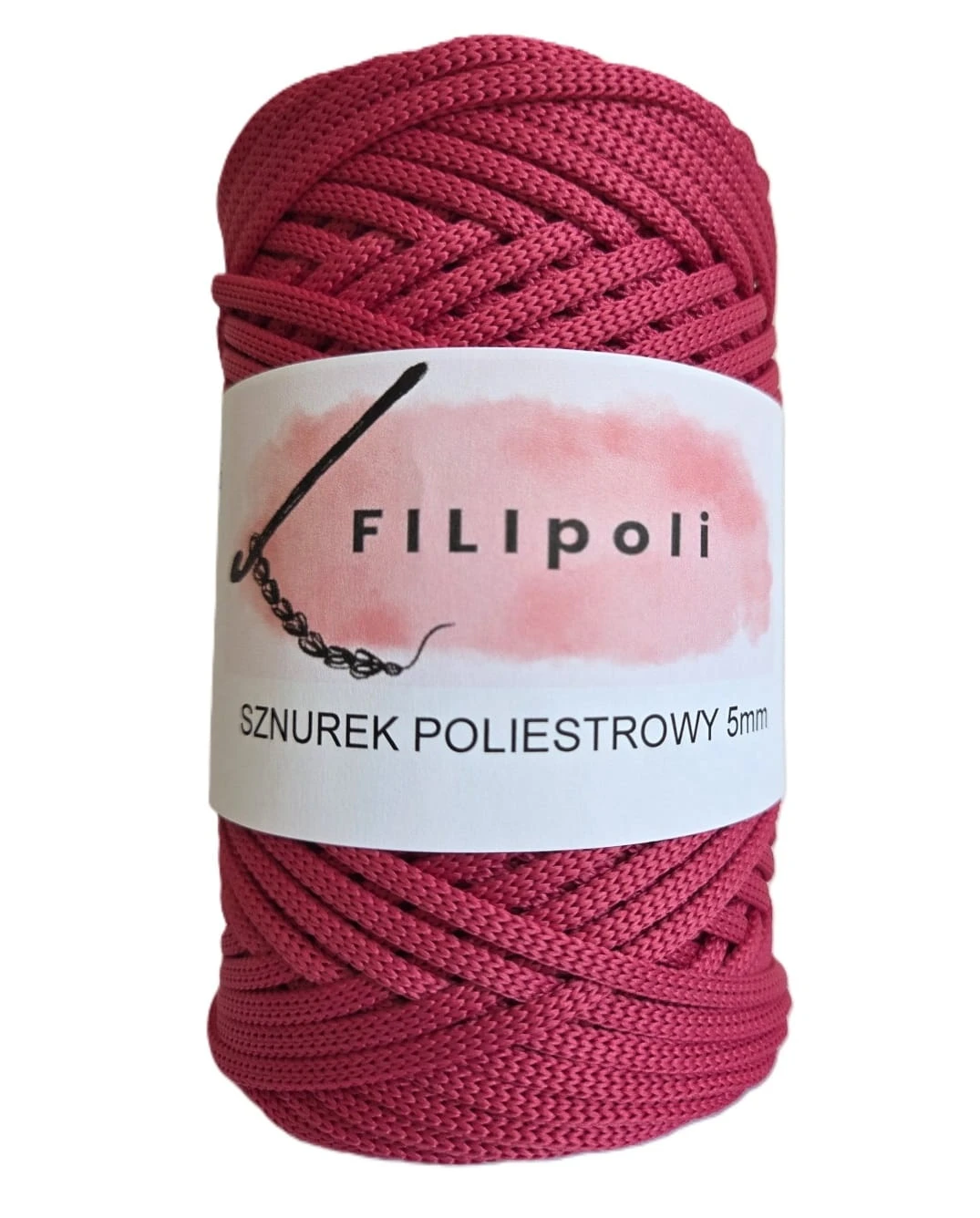 FILIpoli Sznurek poliestrowy płaski 5mm malinowy