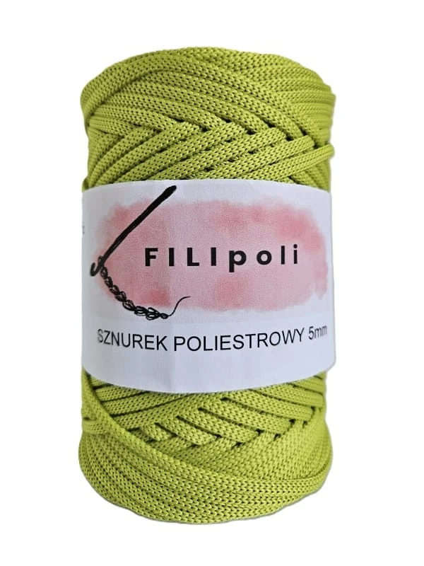 FILIpoli to wysokiej jakości sznurek poliestrowy płaski 5mm bez rdzenia, który doskonale się nadaje do tworzenia szydełkowych torebek, plecaków, koszyczków, biżuterii, dodatków i dekoracji domowych. Jest to sznurek o wiele lżejszy i bardziej wytrzymały niż sznurki bawełniane. Nie mechaci się, nie wchłania szybko zabrudzeń i wilgoci. FILIpoli jest bardzo przyjemny w pracy, miękki i delikatnie elastyczny co ułatwia szydełkowanie.
