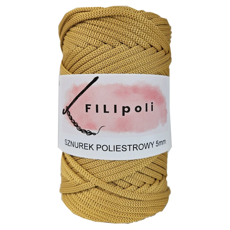OUTLET FILIpoli Sznurek poliestrowy płaski 5mm musztardowy - 141g